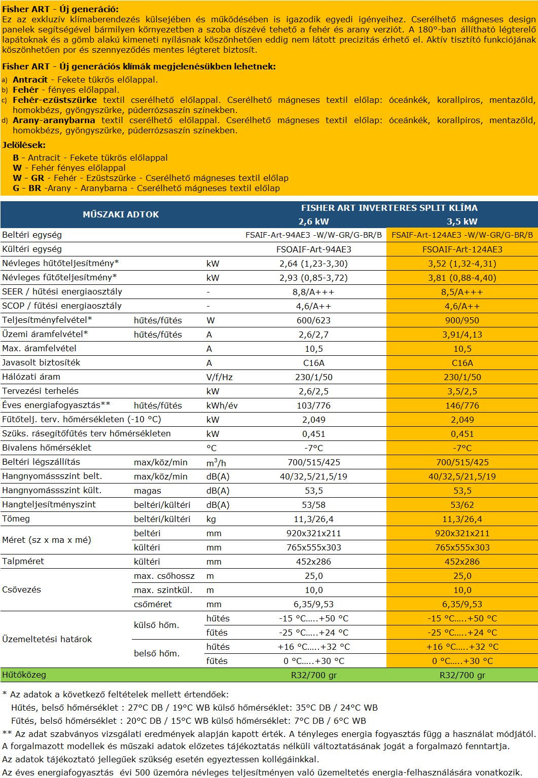 | MŰSZAKI ADATOK | FISHER ART-B "ANTRACIT" INVERTERES SPLIT KLÍMA |